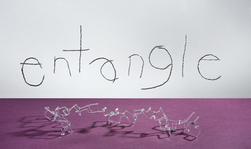 Experimenting with shadow and form, this photograph creates an optical illusion. When viewed from the side, it is obvious that the letters are not complete forms but are instead pieces hung together at various depths to create the illusion of the word.